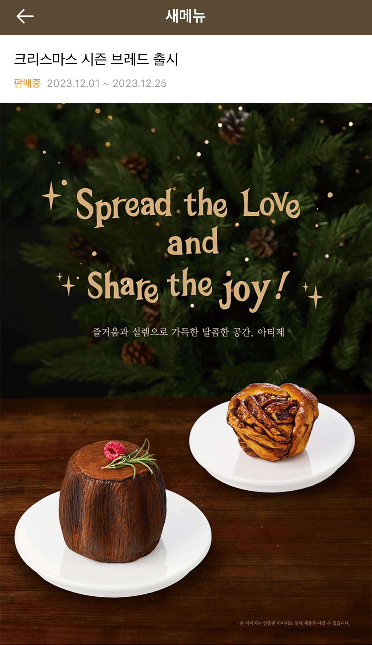 크리스마스를 더욱 특별하게 만들어줄 아티제의 메뉴들을 즐기며, 특별한 시간을 함께 나누어보세요. 아티제는 맛과 디자인에 더해 고객들에게 최상의 서비스를 제공하기 위해 최선을 다할 것입니다. 많은 사람들과 함께하는 크리스마스의 기쁨을 아티제와 함께 느껴보세요. 행복한 크리스마스 되세요!
